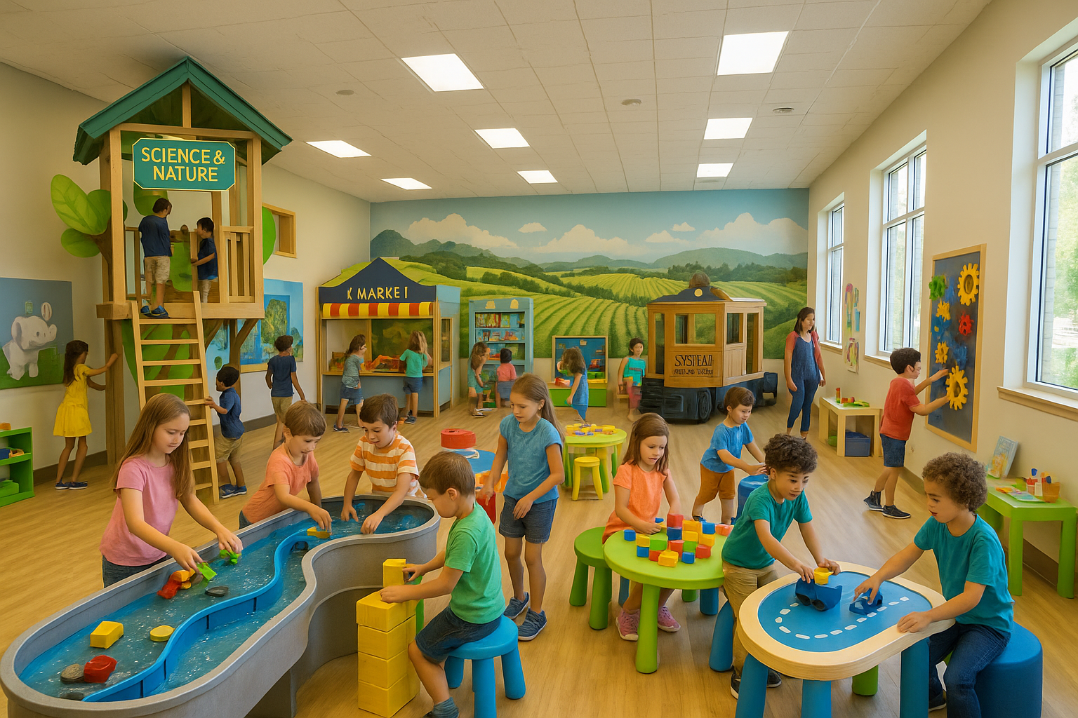 An indoor community playroom for use Monday-Friday ages 0-5y